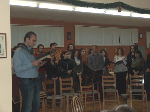 τραγουδώντας μαζί με τη χορωδία, γνωστά παραδοσιακά τραγούδια και